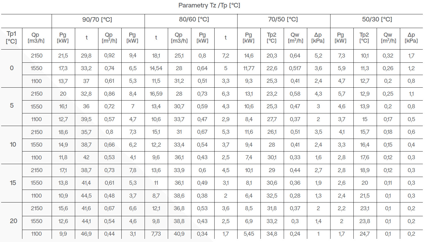 Tz - temperatura zasilania/powrotu wody grzewczej