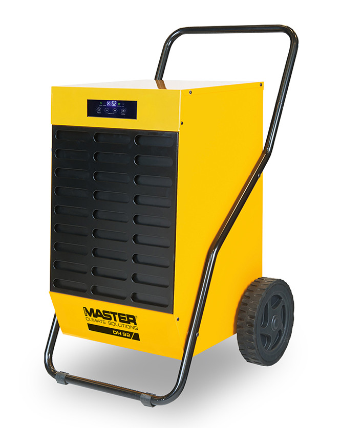 Kondensacyjny przemysłowy osuszacz powietrza DH 92 MASTER przeznaczony do osuszania średnich pomieszczeń komercyjnych oraz przemysłowych, biur, archiwów, pralni, łazienek, suszarni, pomieszczeń remontowanych i na budowie o kubaturze 480-1200m3/h w zależności od stopnia zawilgocenia.