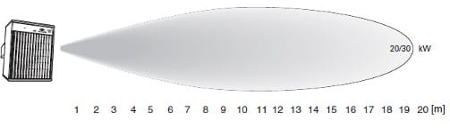 Idealna nagrzewnica elektryczna do ogrzewania średnich i dużych powierzchni sklepów, ogrzewania magazynów, garaży, warsztatów i ogrzewania hal przemysłowych.