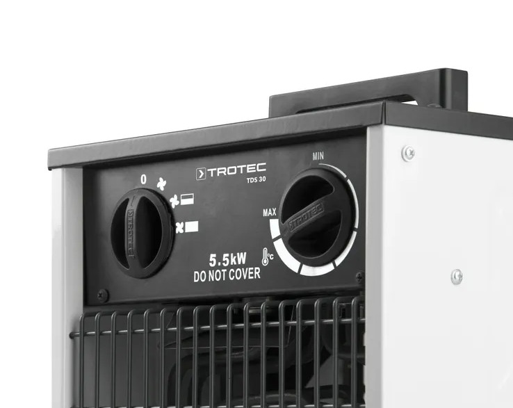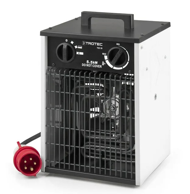 Nagrzewnica elektryczna przenośna podłogowa TDS niemieckiej marki TROTEC do ogrzewania magazynów, warsztatów, pomieszczeń gospodarczych, garaży, kontenerów, pomieszczeń remontowanych i na budowach.