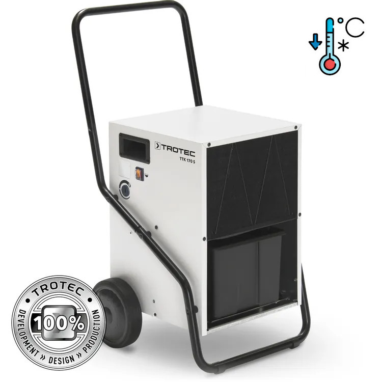 Kondensacyjny osuszacz powietrza TTK 170 S TROTEC przeznaczony do automatycznego osuszania pomieszczeń mieszkalnych, piwnic, pomieszczeń remontowanych i budowanych o maksymalnej kubaturze 225m3.