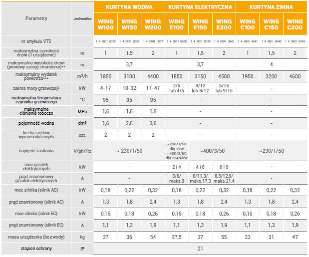 Kurtyna powietrzna WING wyposażona jest w wyprofilowany poprzeczny wentylator nawiewny napędzany standardowym 3-biegowym silnikiem elektrycznym typu AC.