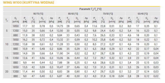 TABELA PARAMETRÓW GRZEWCZYCH