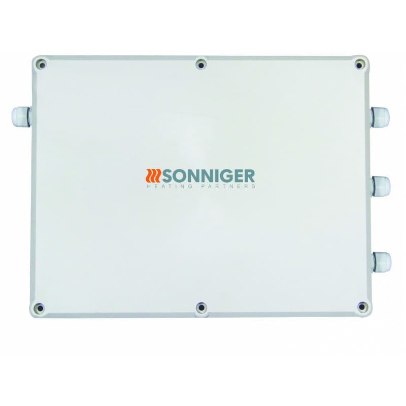 Skrzynka integrująca połączenia elektryczne kurtyn powietrznych GUARD PRO (maks. 6 szt.), sterownika kablowego ściennego COMFORT i wyłącznika krańcowego DOORSTOP (czujnika otwarcia drzwi).
