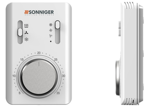 COOL – termostat podaje sygnał dla siłownika i wentylatora, urządzenie uruchamia się powyżej zadanej